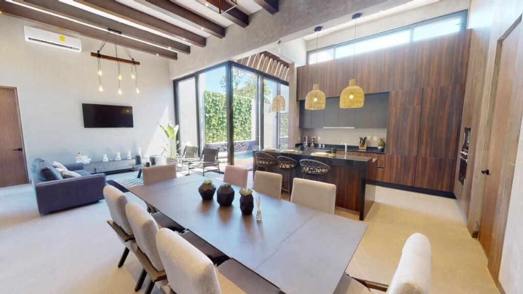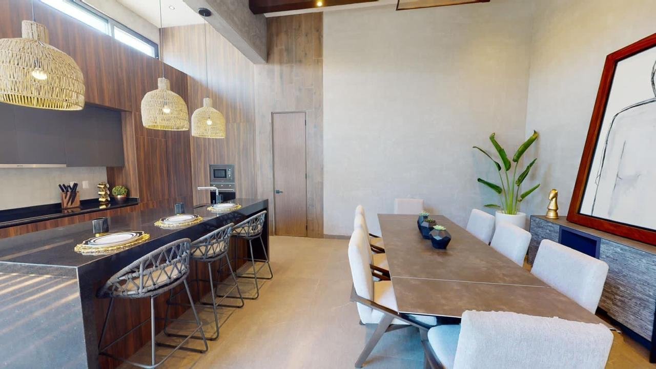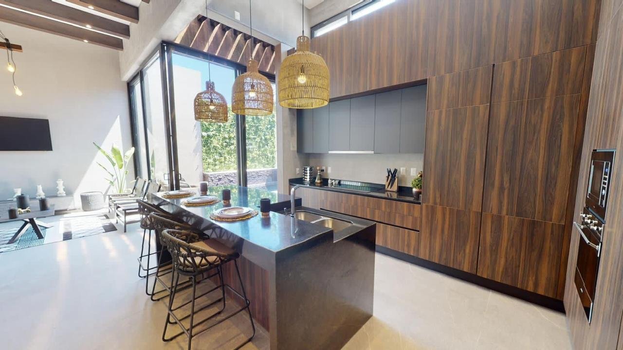 Disfruta de una cocina moderna con isla, alberca privada y un patio perfecto para relajarte o convivir.