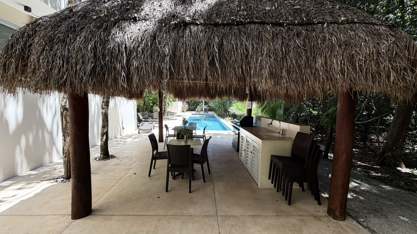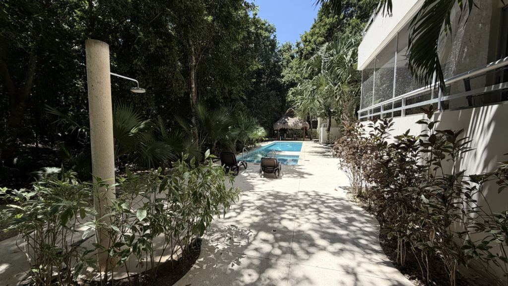 Desde el balcón podrás disfrutar de vistas a la selva y la alberca, en un entorno relajante y privado. La propiedad se encuentra en esquina, lo que brinda mayor privacidad y ventilación.